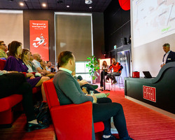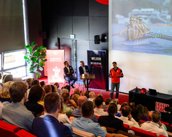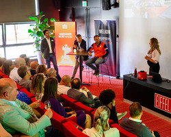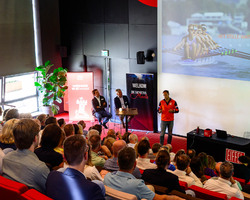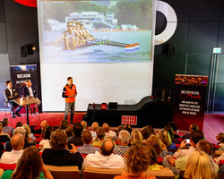 De aftrap vond plaats in het auditorium, waar Eelco Meenhorst een krachtige keynote gaf. Als voormalig CEO van Cycleon en ‘Coach van het Jaar 2024’ bij de Nederlandse roeibond, wist hij het publiek te raken met zijn visie op leiderschap en teamontwikkeling. Zijn centrale boodschap – “Mensen zijn belangrijker dan een plan” – zette aan tot nadenken én gesprekken.