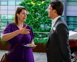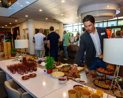 Na de keynote was er volop ruimte om te netwerken. De sfeer was ontspannen, het weer werkte mee, en met heerlijke hapjes, drankjes en muziek van een live DJ bleef het nog lang gezellig.