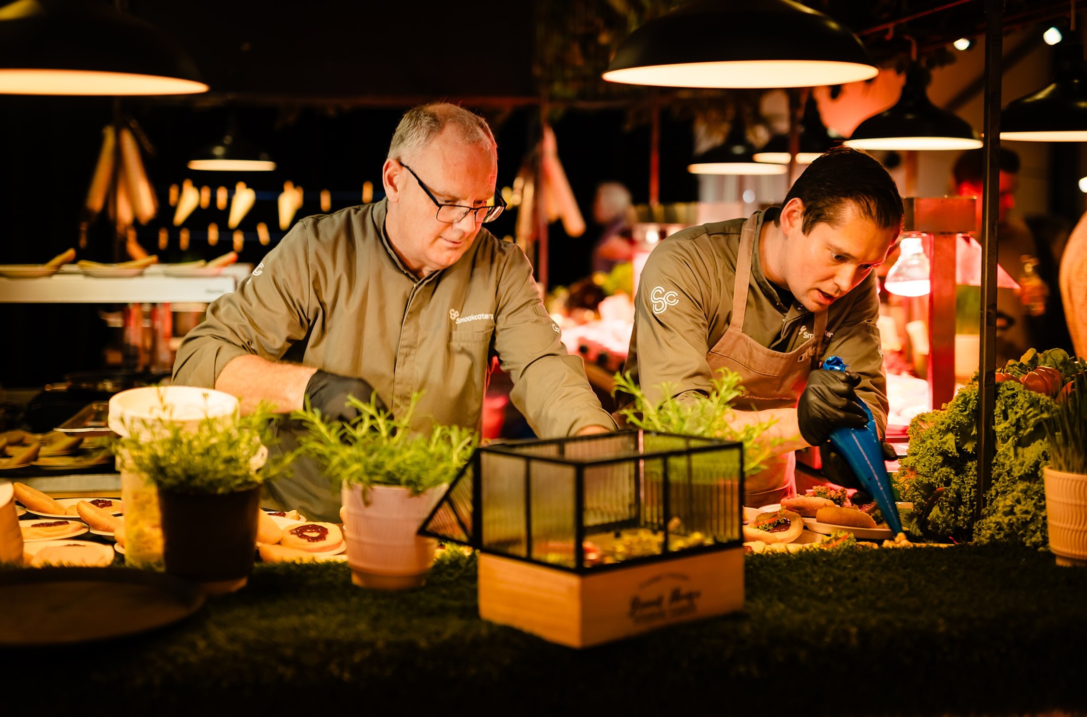 Wat Smaakcateraar onderscheidt, is de unieke combinatie van creativiteit, flexibiliteit en fullservice. Geen standaardoplossingen, maar maatwerkconcepten die naadloos aansluiten bij de identiteit van jouw organisatie én het moment. “Wij creëren beleving,” benadrukt Roy. “Denk aan een winterse foodmarket op locatie, een sfeervol aangeklede loods met live cooking, een glühweinbar en livemuziek, of een high-end sit-down dinner op kantoor – compleet met bediening, tafelaankleding en entertainment.” Het team van Smaakcateraar denkt mee over elk detail: van menukeuzes en styling tot techniek, logistiek, entertainment en zelfs de locatie. Zo toveren ze externe locaties, bedrijfspanden of tenten om tot unieke eventlocaties, perfect passend bij jouw wensen.